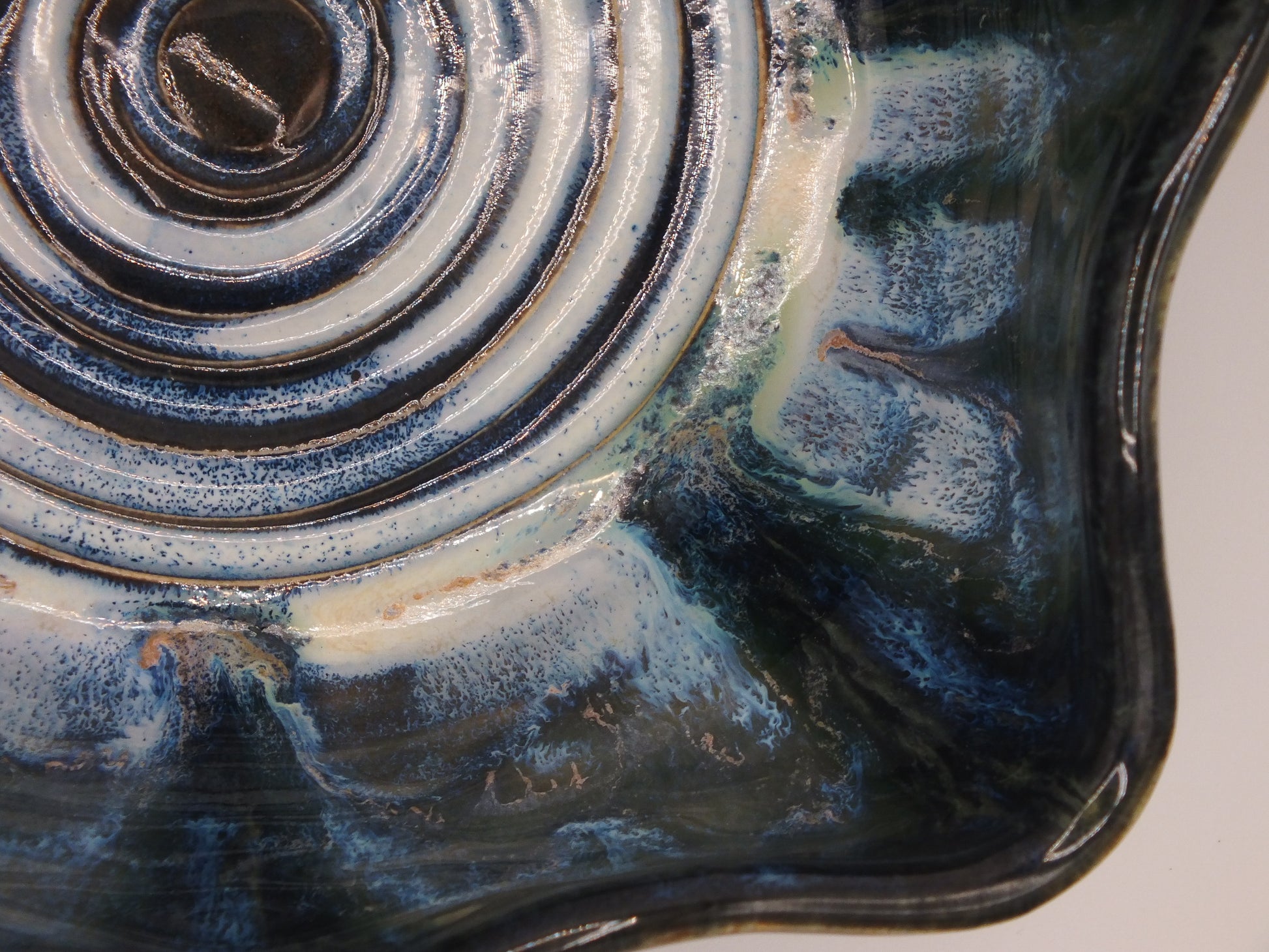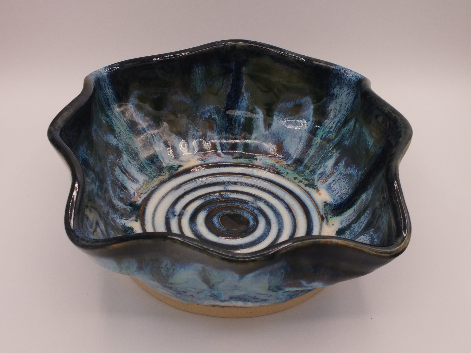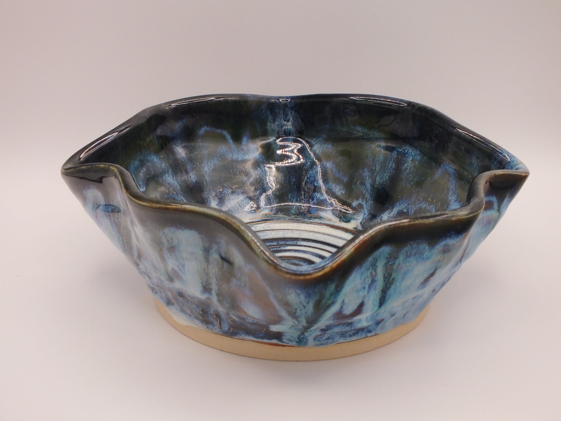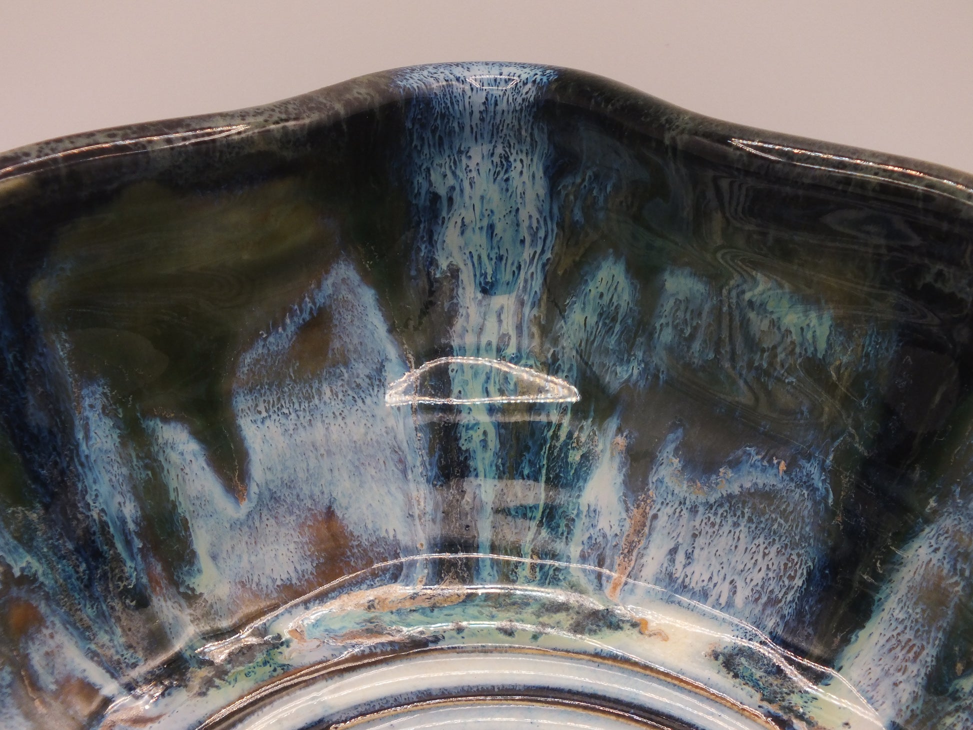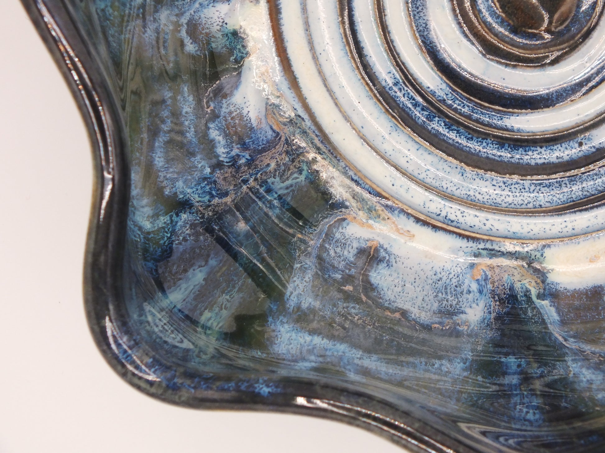 This enchanting fluted display bowl, infused with dreamy watery blues, evokes the tranquil depths of the ocean, creating a captivating deep-water effect that mesmerizes the eye and brings a touch of the serene seaside into your home.