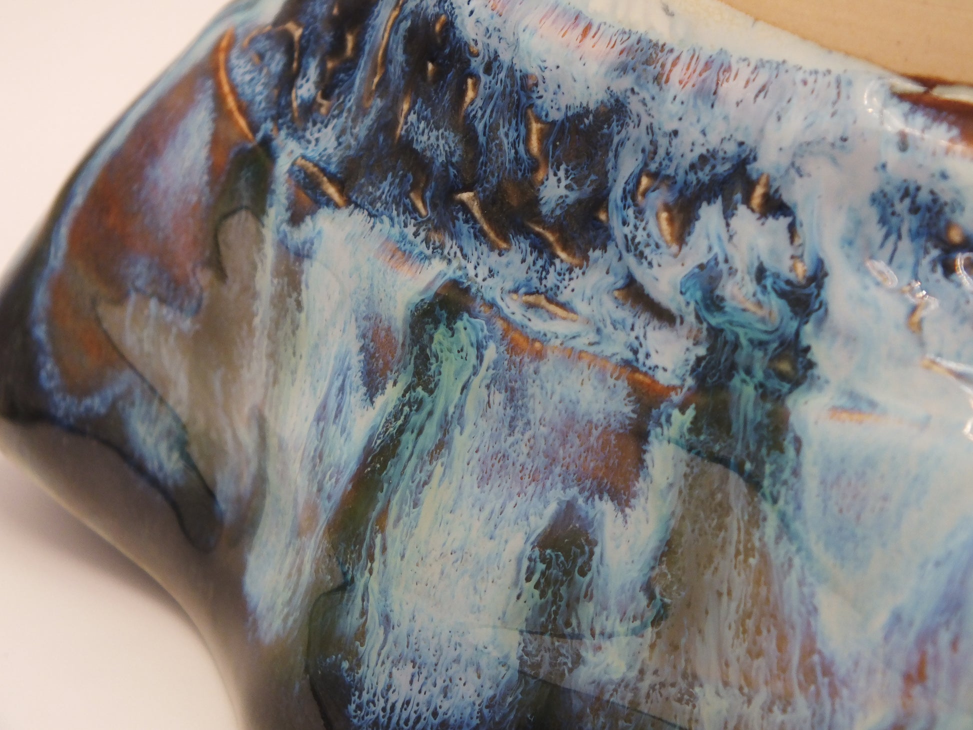 Oxidation. All glazes are food, dishwasher, and microwave-safe.